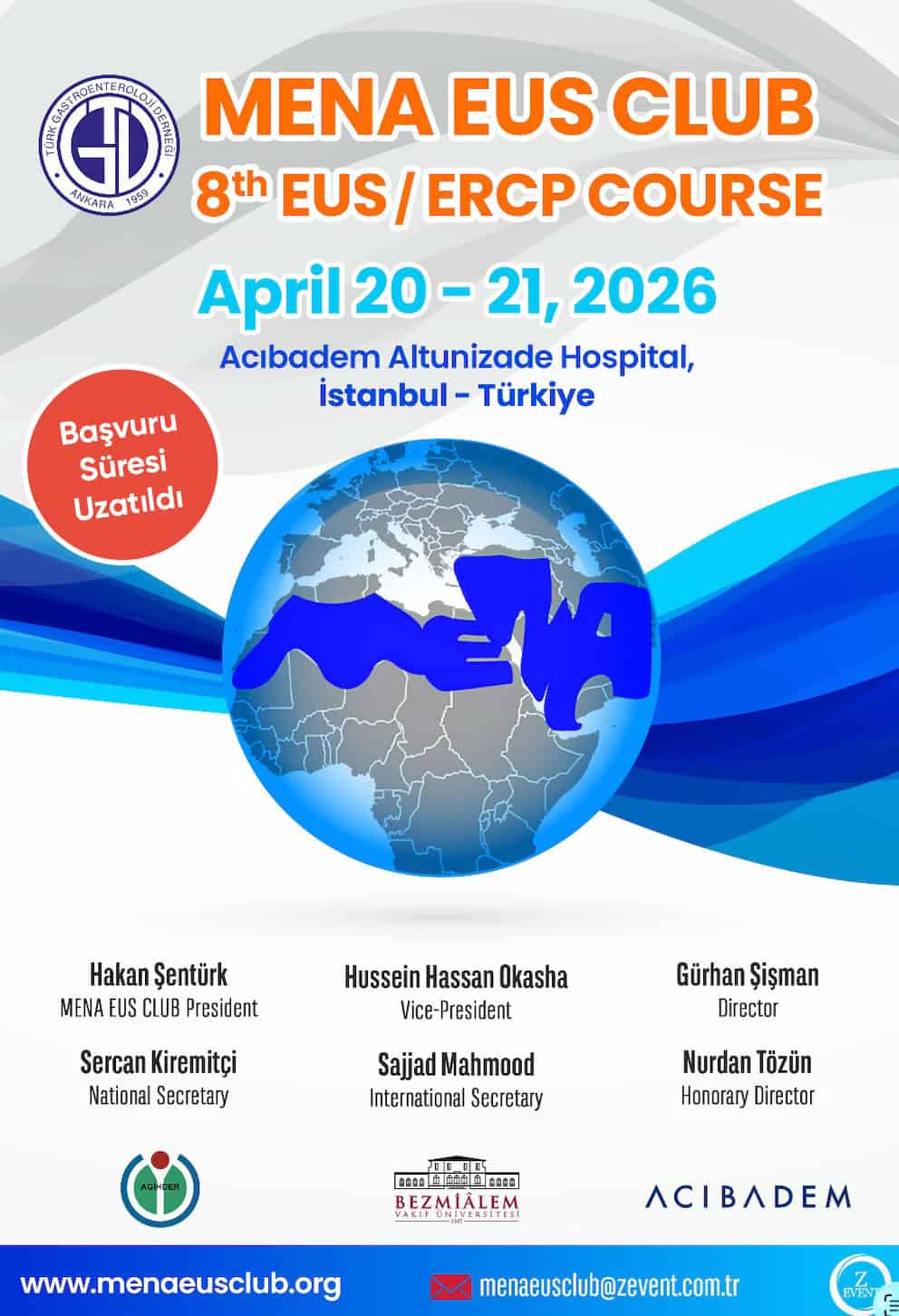 Başvuru Süresi Uzatıldı! MENA EUS Club tarafından düzenlenecek olan 8. EUS / ERCP Cours davetlisiniz.